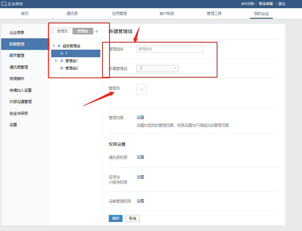 2、 若是设置子管理组,子管理组的通讯录、应用权限不可大于父管理组。