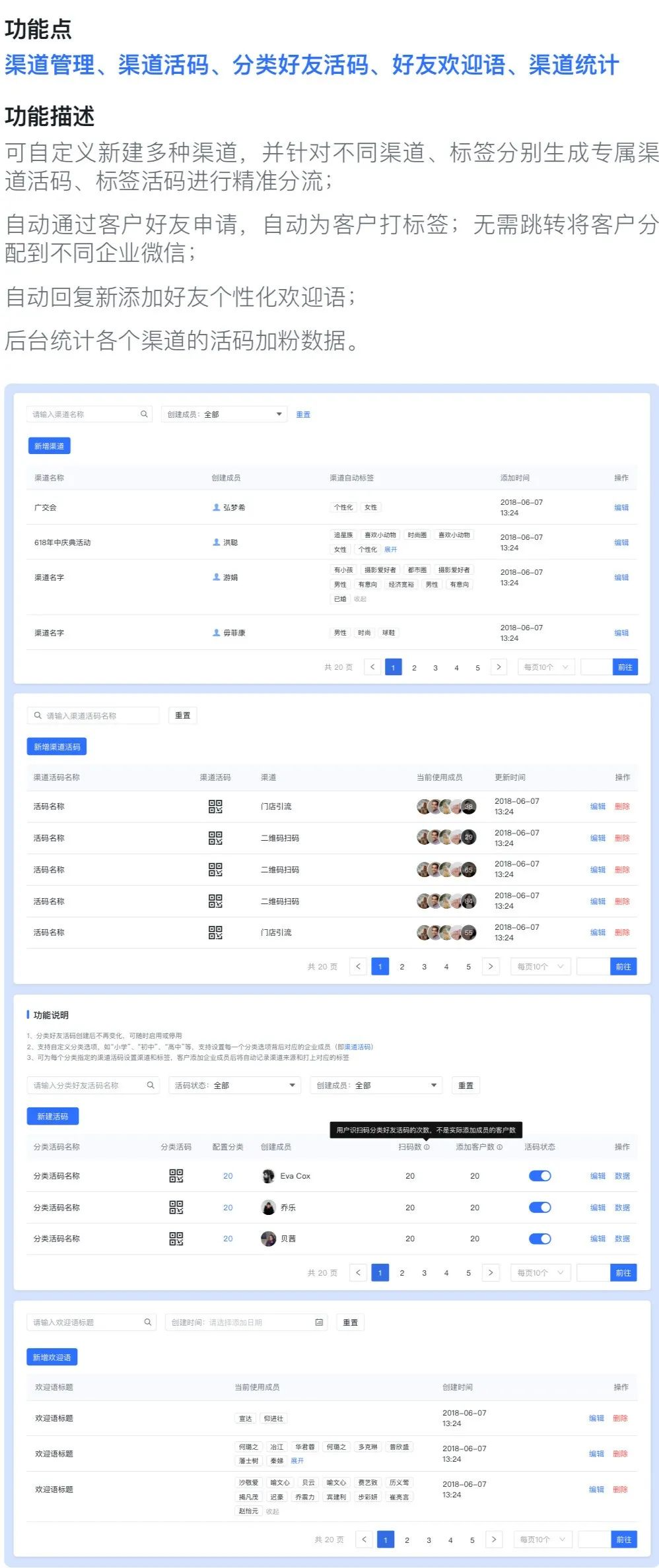 1.解决多渠道吸粉难题、突破好友限制,自动分流降低成员接待压力,提高精细化运营效果;2.提升加粉效率,帮助客服快速沉淀和破冰 ;3.精准分析引流效果,渠道数据有追踪