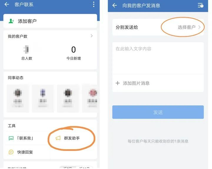 企业群发,可以使用企微的群发助手,选择标签进行群发。通过群发助手,打开率比服务号更高,目前企微的群发信息打开阅读率在90%左右,群发图文打开率也高达64%。