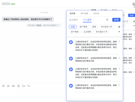 除此之外,企业微信的标签、防广告、防辱骂关键词过滤等功能,可以让员工高效实现精细化运营,而这正是私域流量的本质。