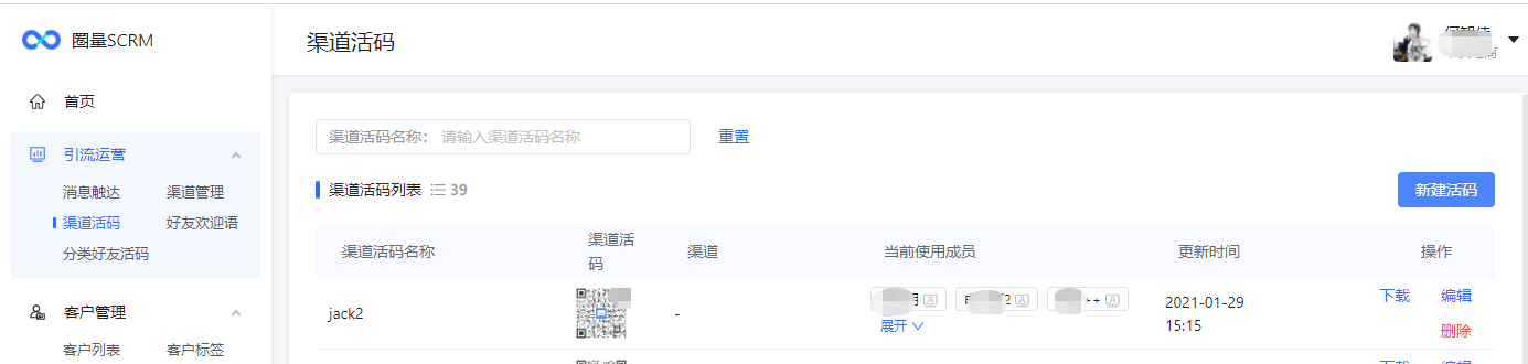 圈量SCRM渠道活码的优点有: