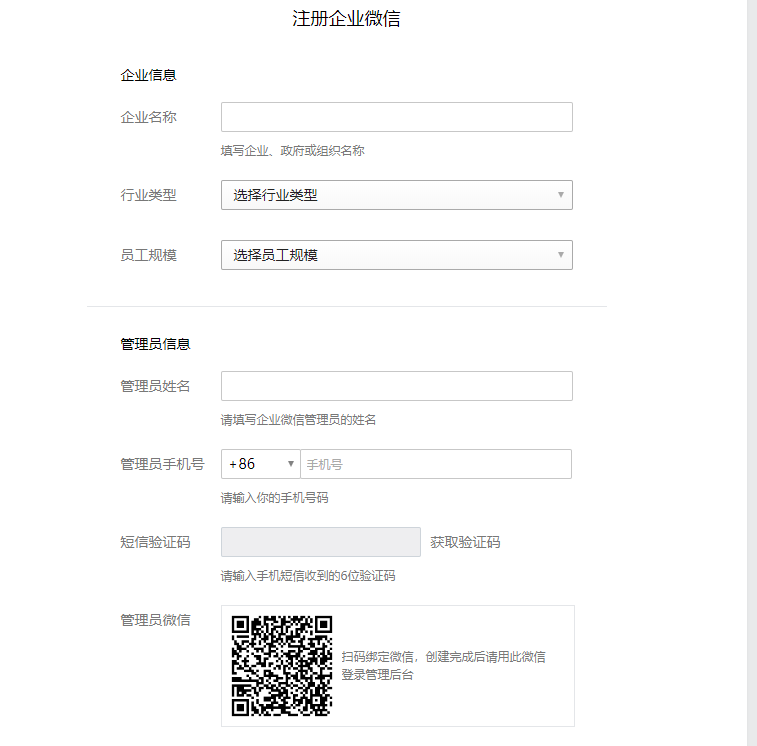 企业注册时需要填写企业的名称、行业类型、员工规模等信息,还有填写管理员的相关信息;