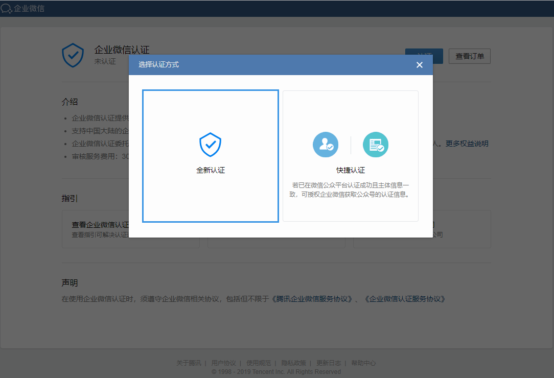 1、登录企业微信——我的企业——企业信息——验证主体信息——通过提交资料验证——企业微信认证——全新认证;