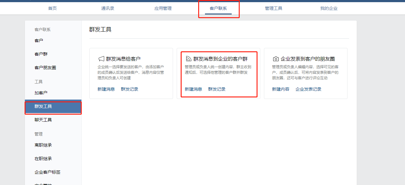 企业微信管理员身份登录后台中,进入客户联系——群发工具——群发消息到企业的客户群,点击新建消息,输入消息内容,然后点击通知群主群发即可。
