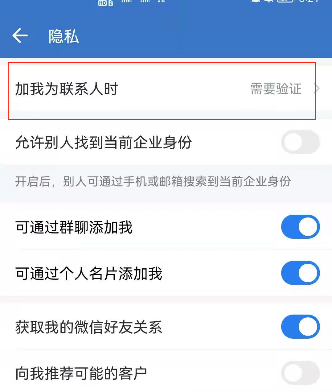 手机端:进入到企业微信,点击我——设置——隐私——关闭加我为好友需要验证,然后就可以实现好友添加企业成员不需要认证即可通过好友请求,能够大大提升运营工作效率。