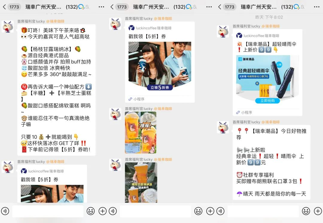 福利官比导购更直接,适合更高频、更低单价的品类,不需要太多思考成本。像瑞幸咖啡的“首席福利官luckin,基本上不需要太多文案,只需要简单直接的抛给用户福利就够了,关键在于优惠多,形式多。