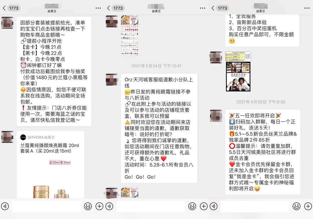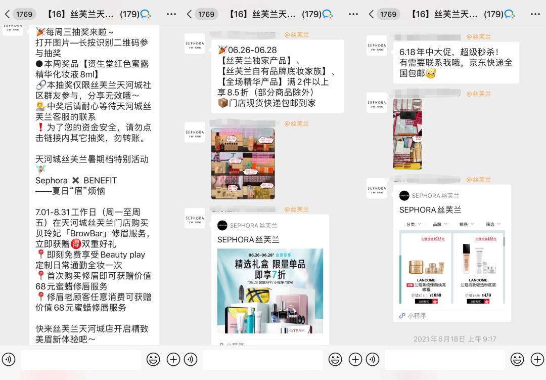 丝芙兰社群:门店活动、会员活动、秒杀折扣等