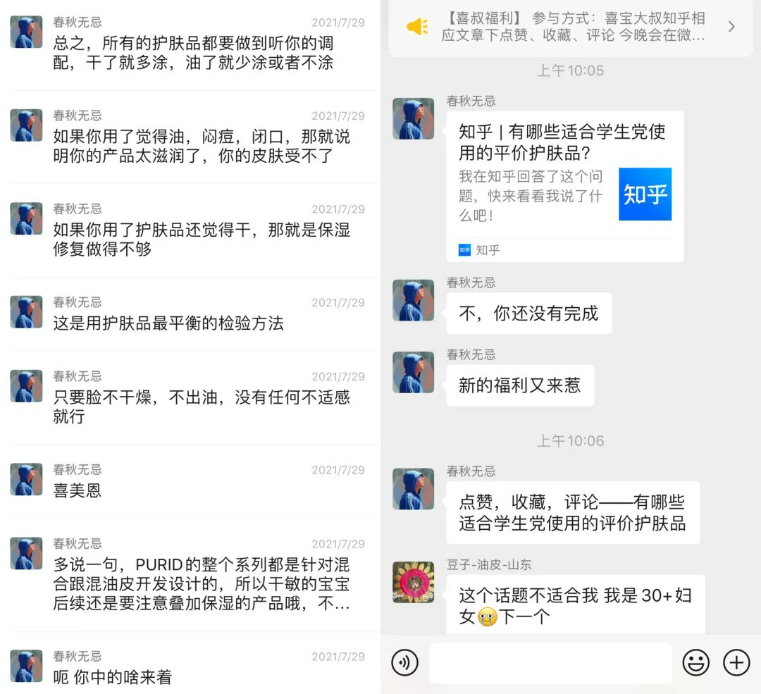 比如完美日记的IP小完子,人设是一个20多岁的女生,爱美食、爱追星、爱美妆,仿佛是活在你朋友圈里的美少女。这跟完美日记的消费群体恰到好处的吻合。通过朋友圈、公众号打造种草人设,分享产品试妆、试色美图,在群里发送种草链接,这是一个完整的打法。