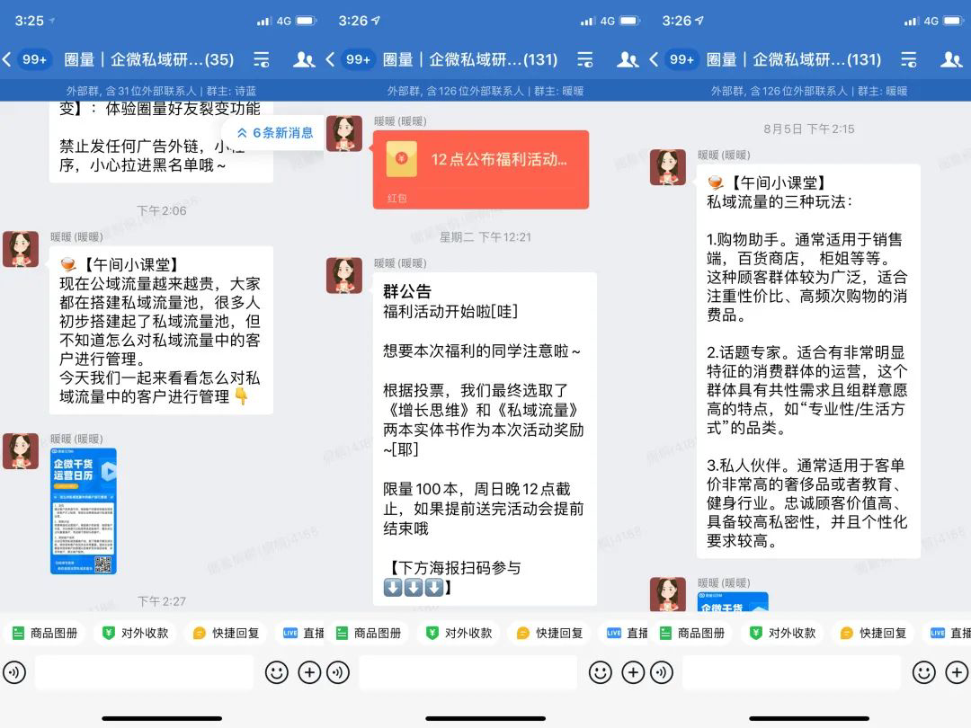在以往一些小规模的个微社群场景中,我们可以看见老板/创始人等真实人设,比如餐饮店老板亲自在群里话家常,聊做菜,增进群内关系。但相比起来,企业微信更偏向于规模化的服务属性,因此社群人设更侧重于服务型IP。