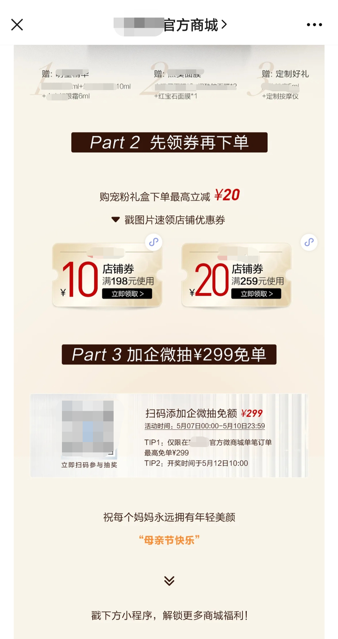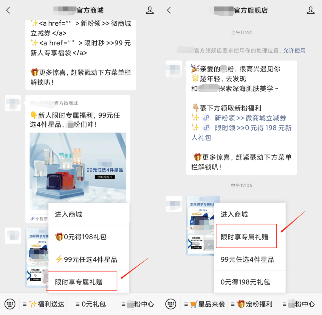周三至周五有礼活动,群内会不定时发放大额优惠券、套装满赠、零元秒杀等活动,巨额回馈用户,彰显社群独特价值,提升用户品牌忠诚度。