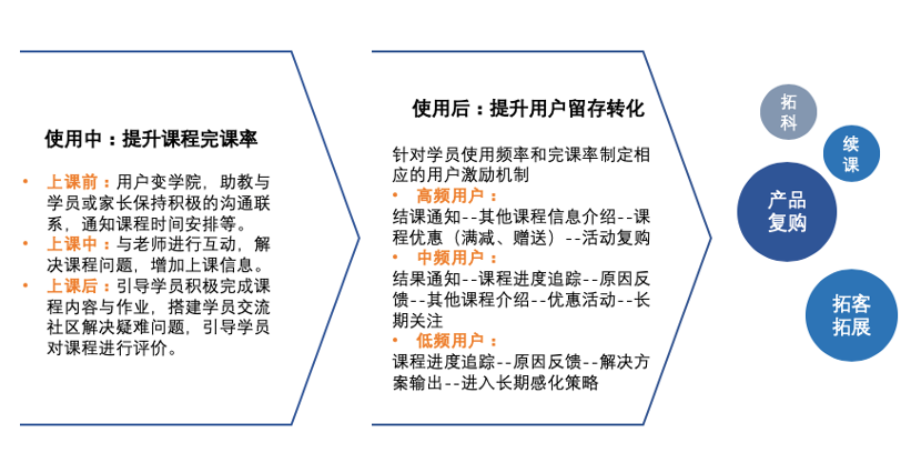 ② 引入期到成熟期。把某品牌运营的启航班作为例子,提高课率与正价课之间的转化率: