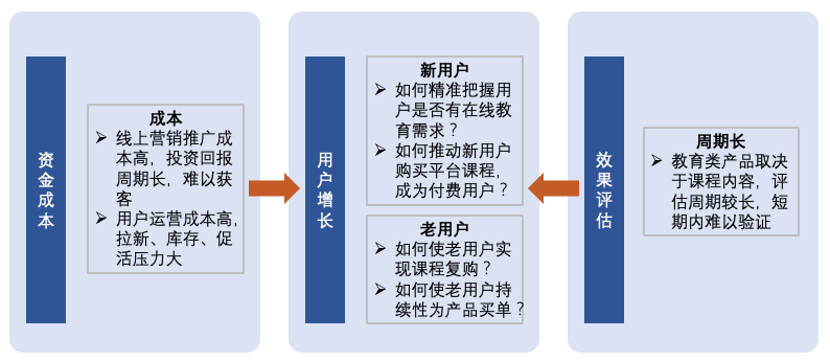 获客周期长,将客户带入社群之后再转化,过程不易,在线教育获利很难。