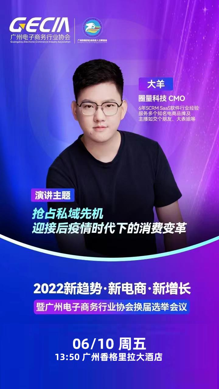 圈量科技CMO大羊分享主题为“电商多元趋势下的私域赋能——为企业提高私域运营效率”。