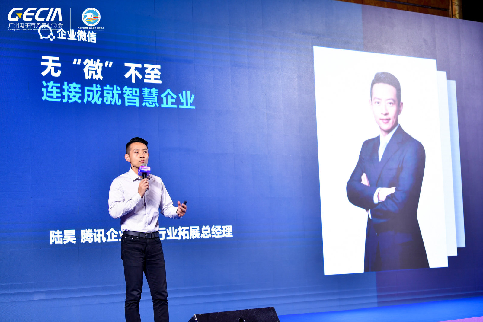 腾讯信息行业拓展总经理陆昊分享了“无'微'不至·链接成就智慧企业”的主题,详细阐述了后疫情时代企业外部环境的变化、品牌企业可持续增长的方法论,以及品牌如何用企业微信实现数智化升级。