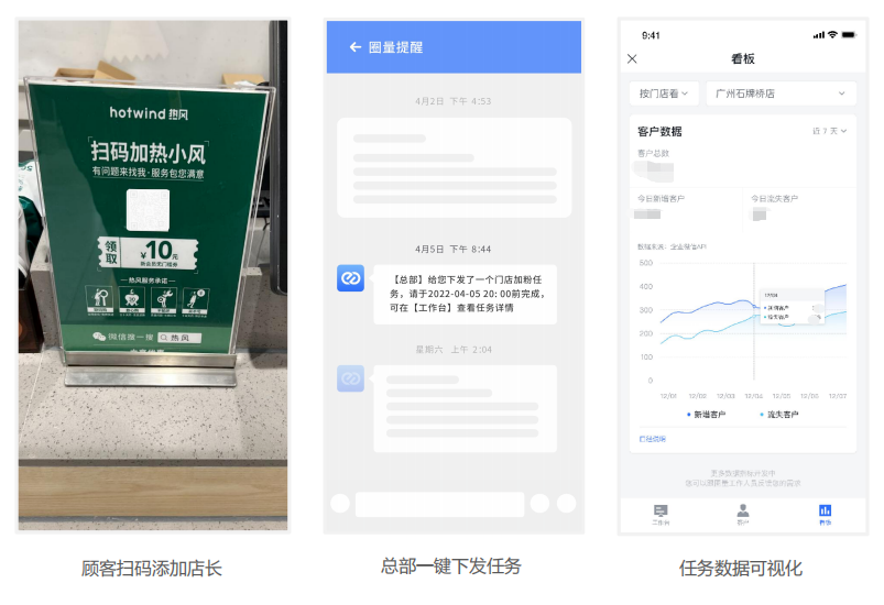 时尚零售品牌hotwind热风曾在微信私域生态尝试过品牌建设,但收效甚微。线下门店导购也曾想过引导用户加好友,但个微私域缺乏统一管理,效率较低,无法及时管理客户,且导购一旦离职前期投入即付诸东流;后来通过线上公众号大批量单向触达用户,但触达用户次数和效率有限。