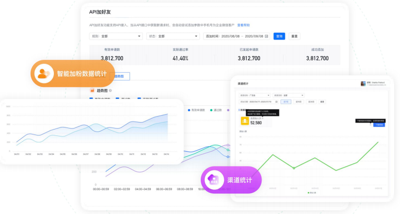 除渠道外,圈量后台统计智能获客数据,帮助企业了解手机号加好友、获客效果。