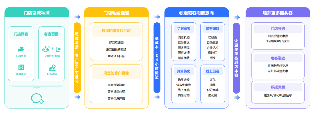 以上就是热风私域运营全流程的拆解,在获客、用户运营留存、转化的各个环节中,圈量SCRM以智能化运营功能全方位助力品牌私域运营效能提升,最终帮助品牌搭建自有流量池,实现线上线下业绩双飞跃!