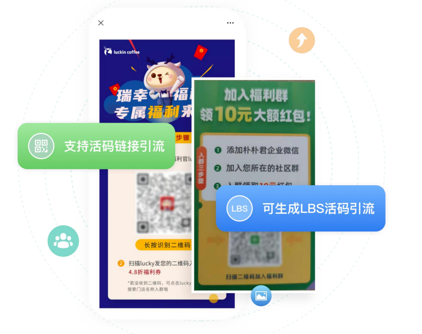 总部给每个导购配置渠道活码,放置在门店物料中,由导购引导客户进群。