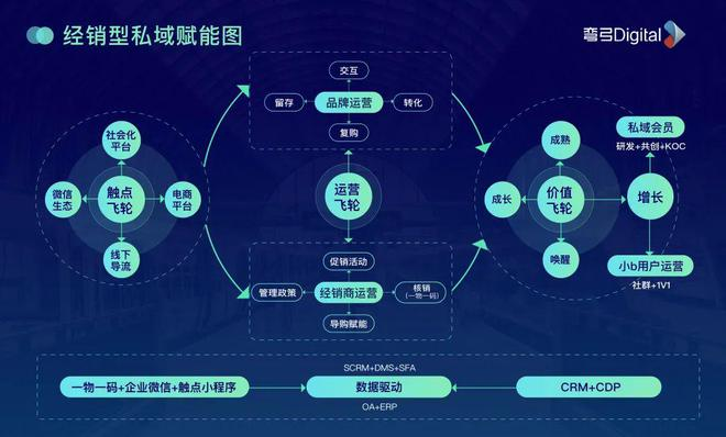 在经销商私域中,传统的技术依赖ERP,但在数字化时代,技术系统必须革新,仅有ERP是不够的,必须在营销端建立新的一套运营体系,通过不同的数字化工具来配合。