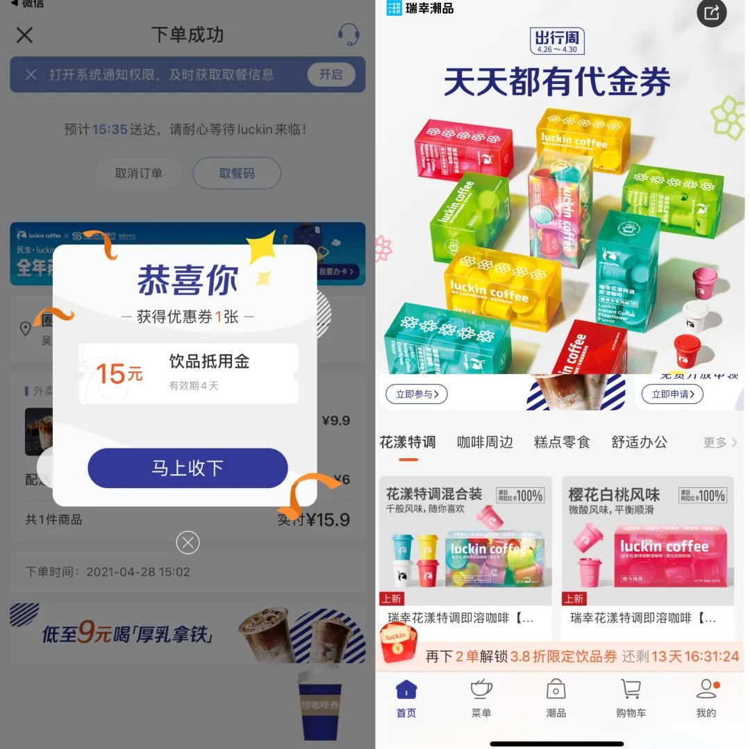 上文提过,瑞幸通过烧钱在全国建立了比星巴克还多的门店,跃升为国民咖啡独角兽。拥有非常多的流量入口。