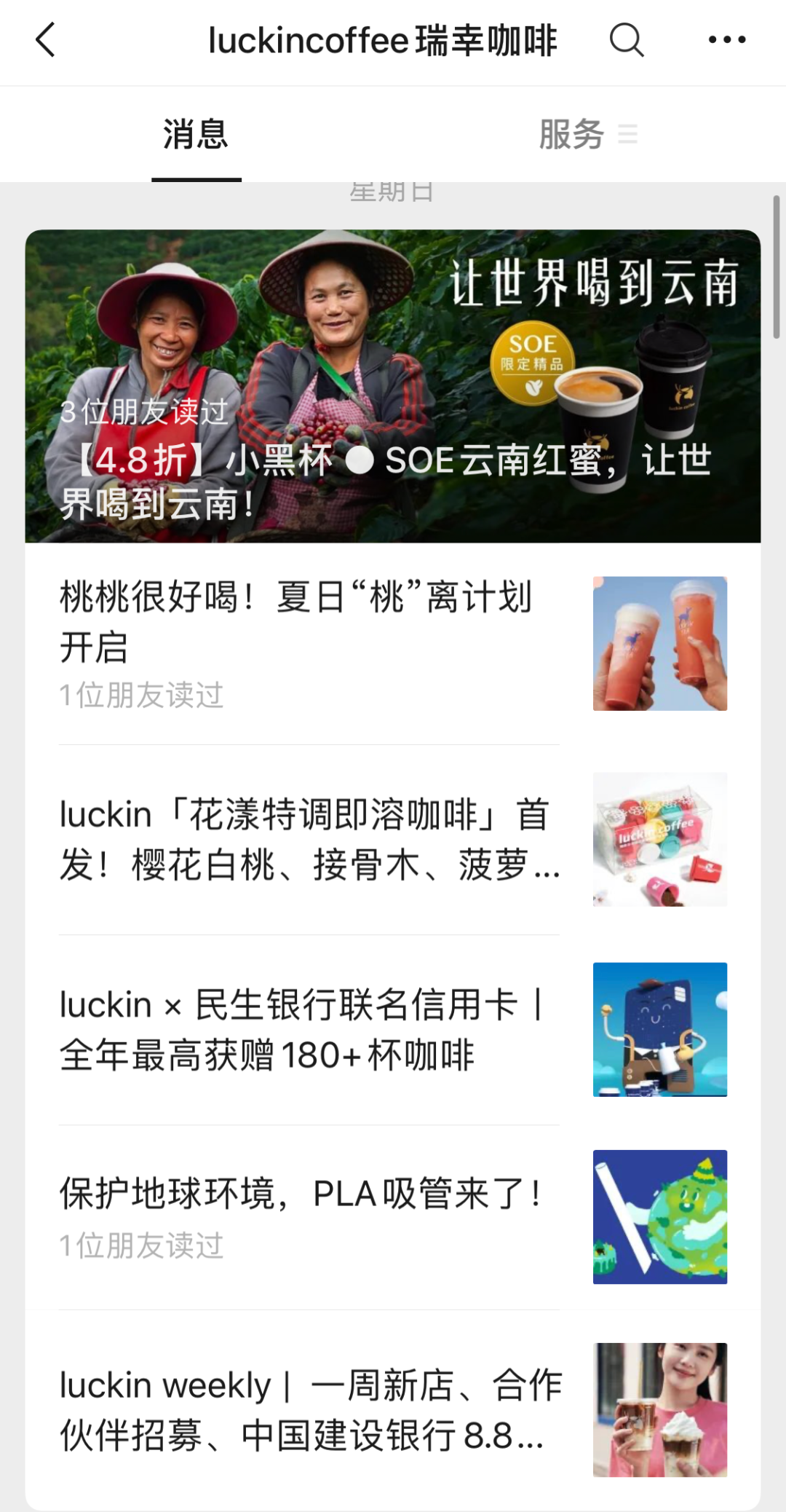 另一方面,产品自身迭代迅速,新品如SOE云南红蜜咖啡、花漾特调即溶咖啡等等,公众号都会精心策划并第一时间推出相应种草内容。同时也会不定期发布各种优惠引流推文。