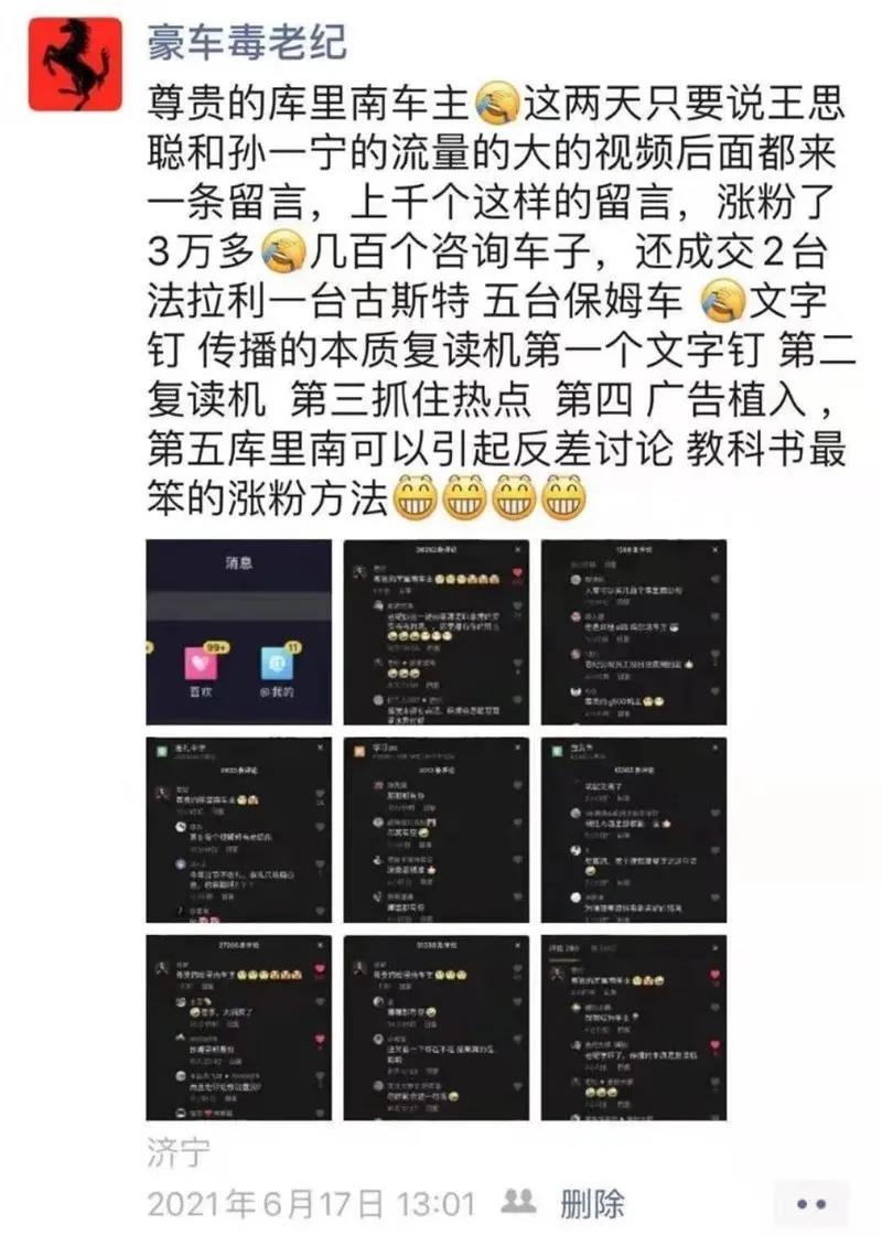 在抖音上,王思聪孙一宁事件爆出时,老纪花了两天时间,在几乎所有相关账号下评论了2000多条“尊贵的库里南车主”,这成为老纪的IP记忆点,强烈占领了用户心智。