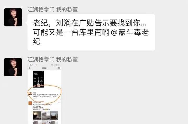 事情起源于润米咨询的创始人刘润在朋友圈发文:“万圈,最近对豪车毒的老纪很感兴趣。谁正好认识,是否方便介绍一下?感谢。”随后这段文案被各路好心人转发到社群,并为刘润、老纪组建了上百个对接群,双方成功接头。