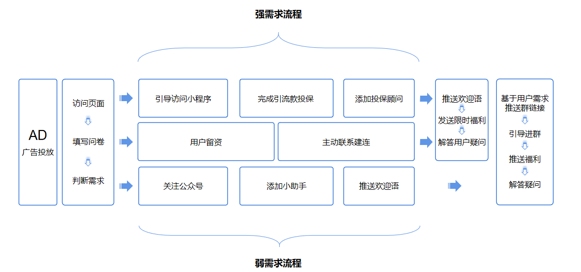 1、差异化流程服务,标记强弱需求用户