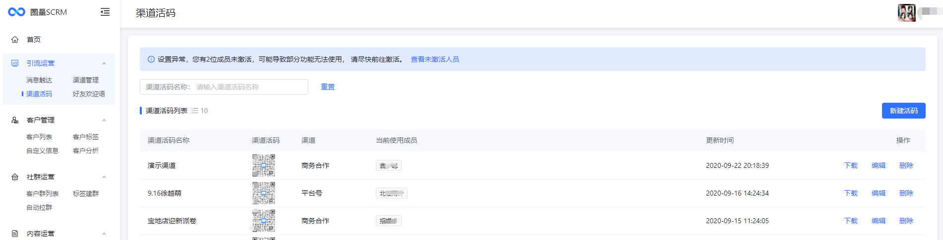 - 选择成员:选择活码对应的企业成员,客户扫码后会随机分配给这些成员。