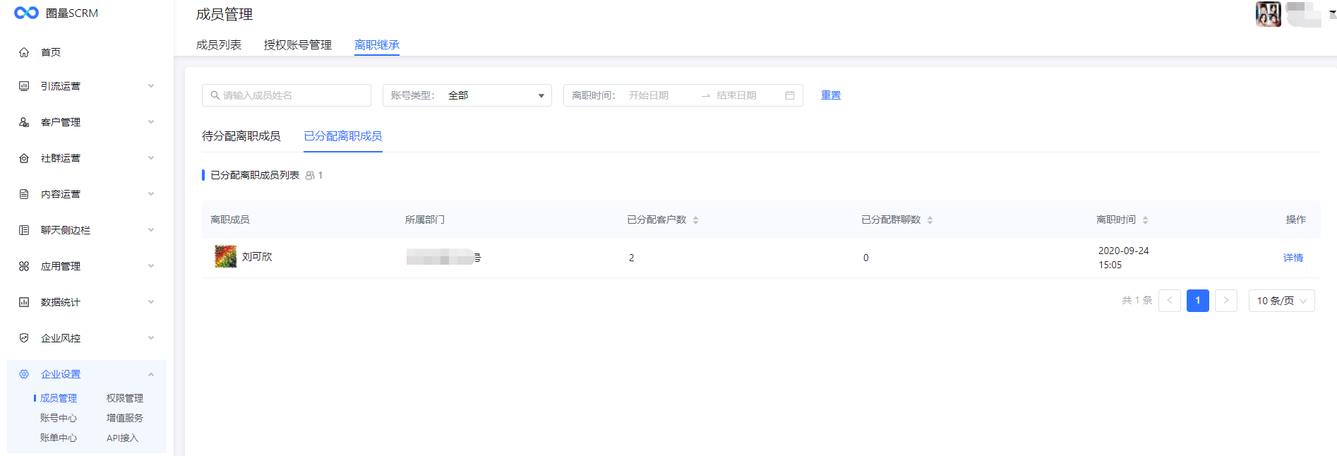查看已分配离职成员列表,及对应成员详情