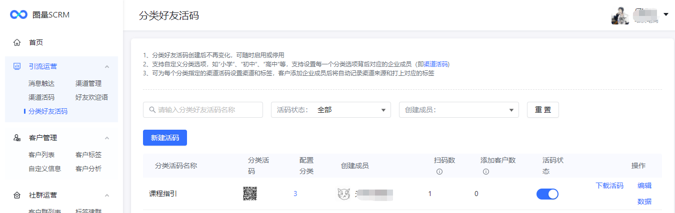 - 渠道活码:需提前创建好,可点击下拉菜单选择已有活码。