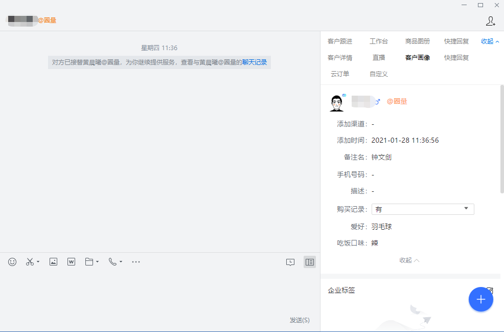 自定义信息功能主要用于编辑【客户画像】侧边栏中的客户信息字段,员工可以在侧边栏直接查看、修改字段信息。